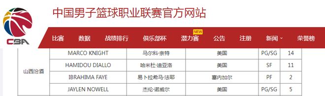 CBA官方:山西取消場(chǎng)均0.9分黑根斯注冊(cè) 新外援奈特成功注冊(cè)