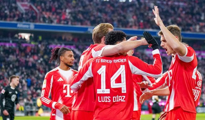 比賽剛開始5分鐘,拜仁就進(jìn)球了!迪亞斯在左側(cè)下底傳中,費(fèi)舍爾竟然門前把球踢進(jìn)自家球門。這粒烏龍球讓人感到有些匪夷所思。拜仁取得夢幻般的開局。6分鐘后,奧利塞送出精準(zhǔn)長傳球,迪亞斯前插,在禁區(qū)內(nèi)卸下皮球后起腳射門,結(jié)果踢偏了。第13分鐘,沃爾夫斯堡扳平比分。佩契諾維奇單刀低射破門。